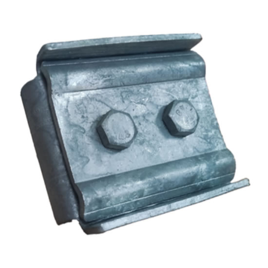 El herraje de suspensión tipo tangente doble está diseñado para soportar cables de acero de 3/16″ y 1/4″ entre postes de enlace de fibra óptica.